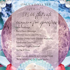 Astrology Love Readings, Massage therapy, Amethyst Crystal Biomat, Infrared Sauna, Bottle of Rose!